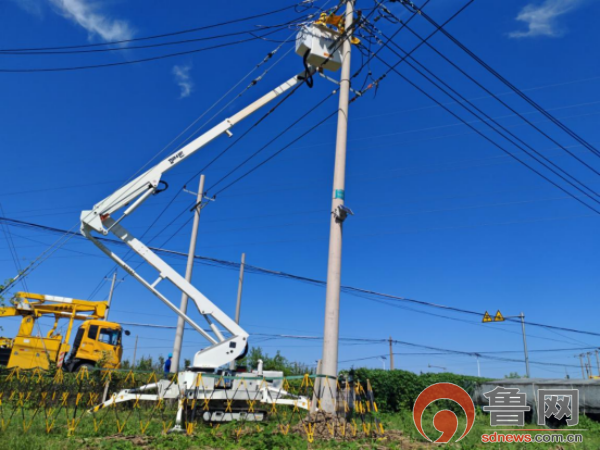 为确保周边企业“零影响”、客户“早用电”,胶州供电公司经过现场反复勘测,决定启用“特种装备”——履带式绝缘斗臂车,实施带电作业完成接火。